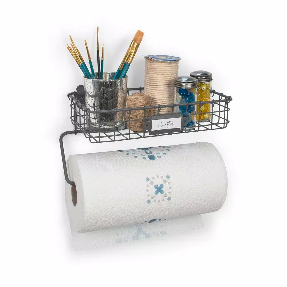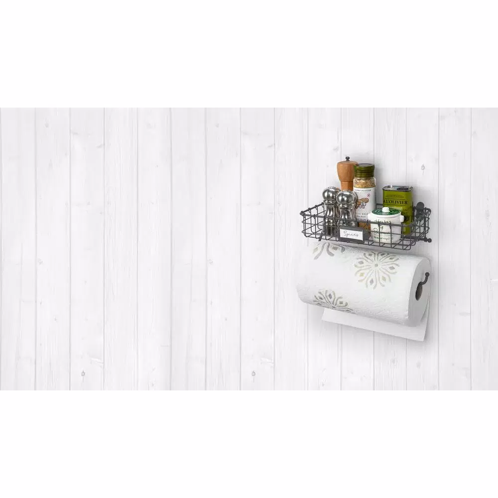 The Vintage Living Wall Mount Basket with Paper Towel Holder is the perfect home décor item, combining style with functionality. Use this wall basket to easily display essential items in an easy to grab location, while also keeping your paper towels in one place. This organization tool can help declutter countertop space in the bathroom or kitchen, while keeping paper towels in a safe and dry location. The wall shelf’s open wire basket design clearly displays items so they’re easy to find when needed most. Home décor item is easy to install and comes with all the required hardware, including a movable faceplate to easily label the basket. In addition, the paper towel holder can hold various towel sizes without jamming. Rolls are easy to replace and always in reach. Dimensions of the wall basket are 7.5” H x 12.5” W x 6.25” D. The Vintage Living Wall Mount Basket with Paper Towel holder is made from steel material and includes all installation hardware. Wall basket is not dishwasher safe. Wipe clean with a damp cloth and dry thoroughly with a towel.