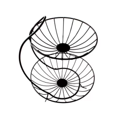 Stylishly display foods with the Yumi 2-Tier Server from Spectrum Diversified. Two open wire bowls allow you to store and serve fruit, vegetables, breads, pastries and coffee pods in one convenient place. Two-tiered basket is perfect for all your produce: apples, pears, lemons, limes, grapefruit, kiwis, bananas and other fruits in convenient countertop food storage. Alternatively, use your fruit baskets for vegetables or bread. Wire storage limits overripening, expanding the window in which you can enjoy your fruits and vegetables. Air circulation prevents buildup of ethylene gas, so your fruits will stay fresh for longer. The simple design will add a sophisticated touch to any counter or tabletop. This fruit server is designed to hold an assortment of fruits and healthy snacks for quick and easy access. Keep produce nearby by displaying it on the counter. Encourage your family to choose a healthy snack by leaving out apples, oranges, pears, or bananas. Keep produce in beautiful food storage for healthier eating. The minimalist design blends seamlessly into an elegant, modern kitchen. The sleek, smooth lines and modern finish add sophistication and. The gently curved sides add a touch of grace to this functional countertop organizer. Made of sturdy steel.
