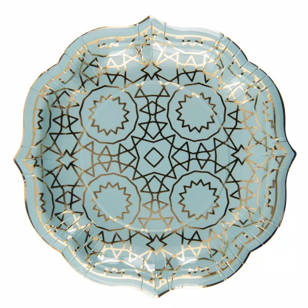 These fancy shaped sage and gold beauties have a metallic gold rim and will make you want to host a party at the first change you get, and add a touch of elegance to any event. Impress your guests for a beautiful brunch, boat party, Picnic, New Years, BBQ, Fathers Day, garden party, birthday, and more. Your guests will not believe that these are paper plates. Package includes 16-paper Dessert Plates from the SugarPlum Collection.