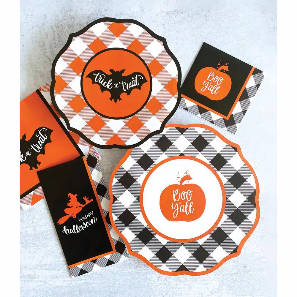 These fancy shaped Halloween beauties have black and orange accents and will make you want to host a Halloween party at the first chance you get, and add a touch of elegance to any event. Your guests will not believe that these are paper plates. Package includes 16-paper Dinner Plates from the SugarPlum Collection.