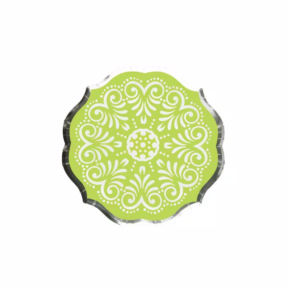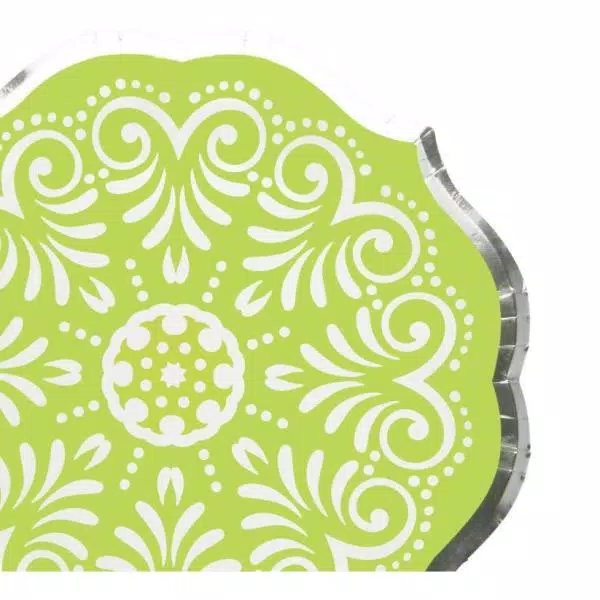 These fancy shaped lime green beauties have a metallic silver rim and will make you want to host a fiesta at the first change you get, and add a touch of elegance to any event. Impress your guests for a beautiful brunch, boat party, Picnic, New Years, BBQ, Cinco de Mayo, Fathers Day, garden party, birthday, and more. Your guests will not believe that these are paper plates. Package includes 16-paper Dinner Plates from the SugarPlum Collection.