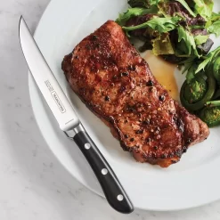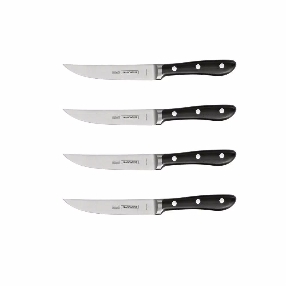 - Tramontina 4-piece- 5 in. steak knife set brings steakhouse elegance to your table with knives specially made to easily slice through savory steaks and other cooked meat