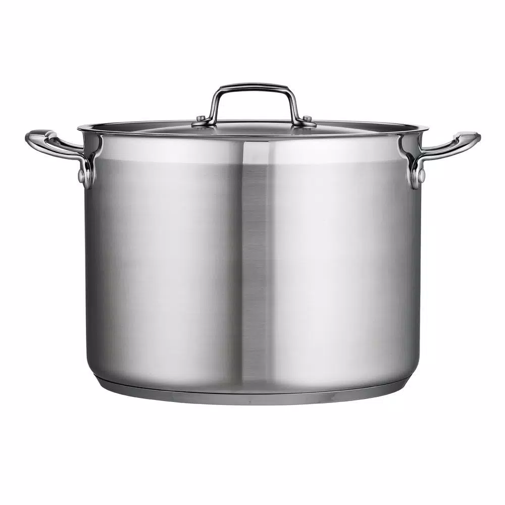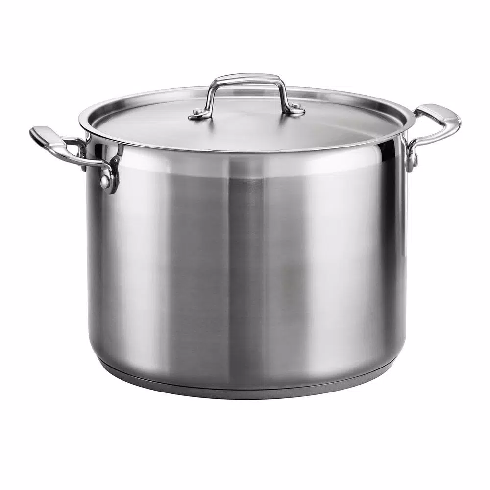 Prepare an extra-large batch of stew with ease. Tramontina’s Gourmet 16 Qt Stainless Steel Covered Stock Pot is made with a tri-ply base impact-bonded with a layer of 18/10 stainless steel, a layer of aluminum core, and a layer of magnetic stainless steel. The unique composition allows for even heating on all sides all the way up the pot, as well as compatibility with induction, gas, electric, and ceramic glass cooktops. Cast stainless steel, riveted handles give you a comfortable grip for control. Dishwasher-safe and oven-safe up to 500°F (260°C) without the glass lid and up to 350°F (176°C) with the lid. This is one is essential for anyone who cooks for crowds!