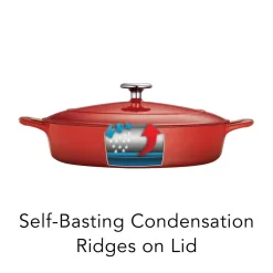 - Self-basting condensation ridges on lid uniformly collect and direct vapors onto food, producing moist and savory dishes