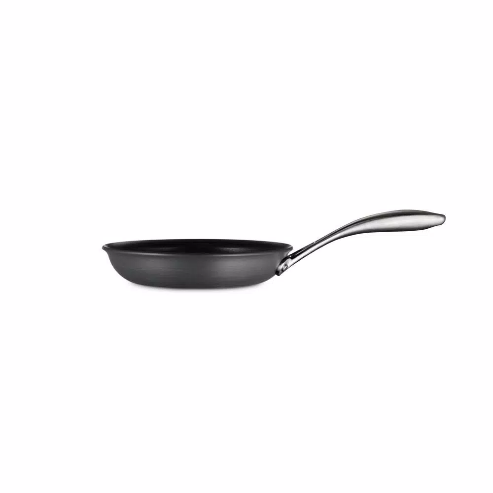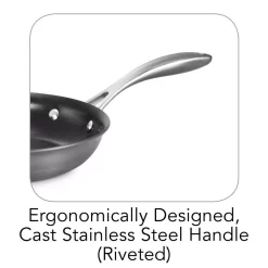 Tramontina Gourmet Hard Anodized 8 inch Fry Pan is harder than other conventional cookware. Hard anodization is a manufacturing process that treats the aluminum to make it harder and more durable. The result is a solid coating distinguished by its dark gray color. This process creates a surface typically harder than other conventional cookware. Made from heavy-gauge hard anodized aluminum construction in a beautiful, dark gray finish has superior durability and provides even heat distribution. Part of the TRAMONTINA GOURMET collection, which features premium products engineered and manufactured with the finest design, materials and workmanship.