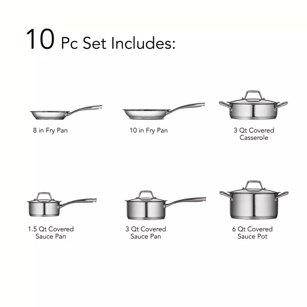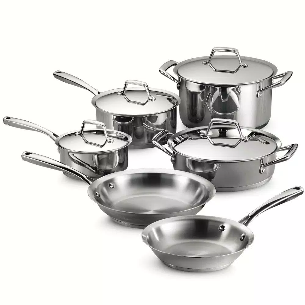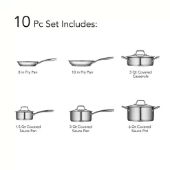 The Tramontina Gourmet Prima 10-piece Cookware Set features a tri-ply base construction for exceptional performance that distributes heat evenly paired with the impeccable beauty and quality of stainless steel. Its base is impact-bonded with three layers, that consist of 18/10 stainless steel, an aluminum core for conductivity, and magnetic stainless steel, which makes the line perfect for induction-ready cooktops. It adds both beauty and performance to everyday cooking! Part of the Tramontina Gourmet collection, a series of timeless products crafted especially for the cooking enthusiast.