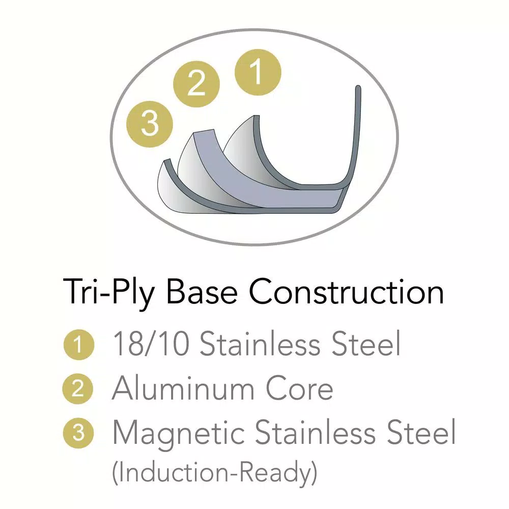 - Tri-ply encapsulated impact-bonded base distributes heat evenly