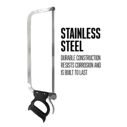 Need to cut through bone while processing meat. The Weston Butcher Saw is a butchering essential. The 25 in. blade is stainless steel. The saw has a trigger lock to maintain blade tension while cutting.