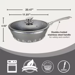 AMERCOOK 11 In. Die Cast Aluminum Round Wok And Lid With Induction Bottom