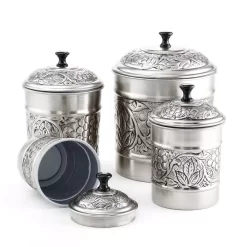 Old Dutch 4-Piece Antique Pewter Embossed “Heritage” Canister Set