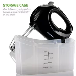 Ovente 5-Speed Ultra Power Hand Mixer With Free Storage Case, Black