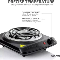 Ovente 1000-Walt (120-Volt) Single Burner 6 In. Hot Plate Black Adjustable Temperature Control