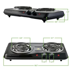 Ovente 5.7 In. And 6 In. Black Double Hot Plate Burner Electric Stove With Adjustable Temperature Control