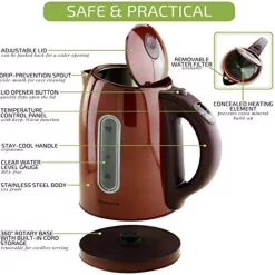 Ovente KS89BR 7-Cup Brown BPA-Free Electric Kettle, 5 Preset Settings With Auto Shut-Off And Boil-Dry Protection