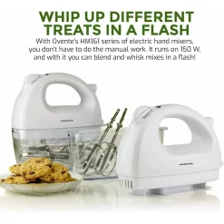 Ovente 5-Speed 150-Watt White Hand Mixer Stainless Steel Chrome Beaters And Free Snap-On Case