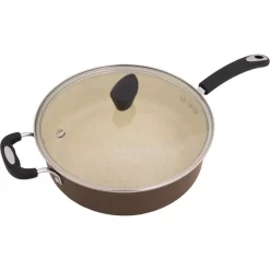 Ozeri Stone Earth 5.3 Qt. Aluminum Ceramic Nonstick Sauce Pan In Coconut Brown With Glass Lid
