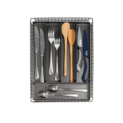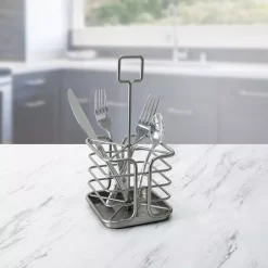 Spectrum Euro Kitchen Flatware & Silverware Organizer Caddy, Satin Nickel