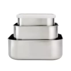 Tramontina 3Pc Stainless Steel Covered Square Container Set – Frosted Lids